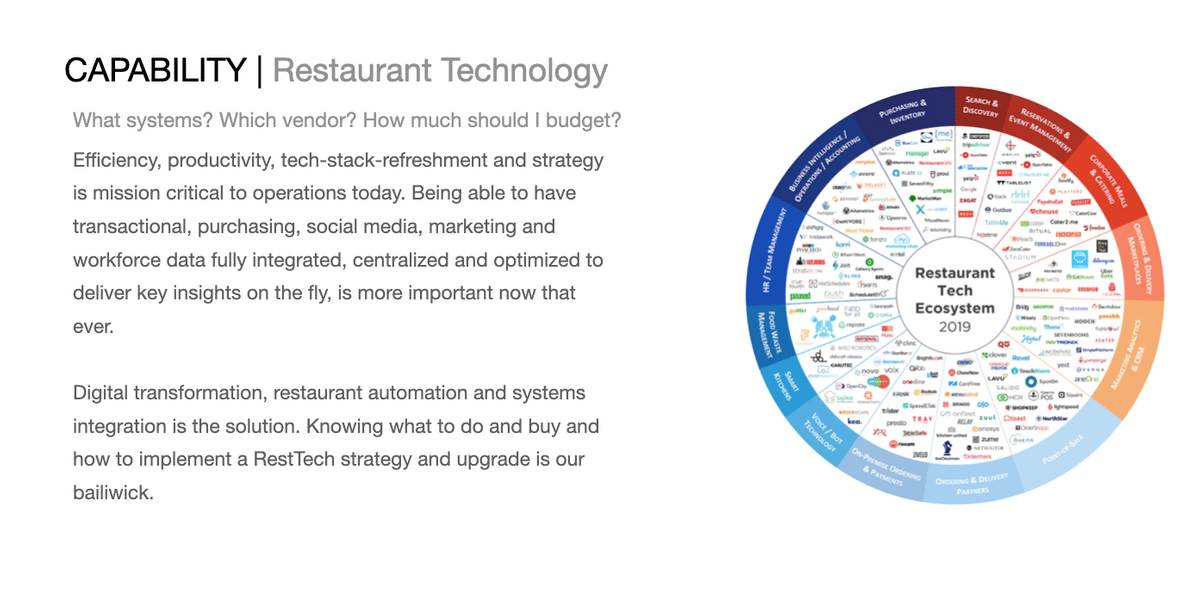 RestTech Partners are restaurant operators, restaurant technology innovators and RestTech strategists. We advise restaurant brands, large and small. We consult with investors, IT heads, operations and finance executives and technology innovators globally. This sharpens our minds and leverages our unique combination of expertise and bench strength of capable digital transformation consultants.